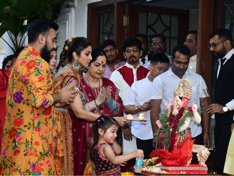 Shilpa Shetty And Shamita Shetty Ganpati Bappa Immersion At Her R...