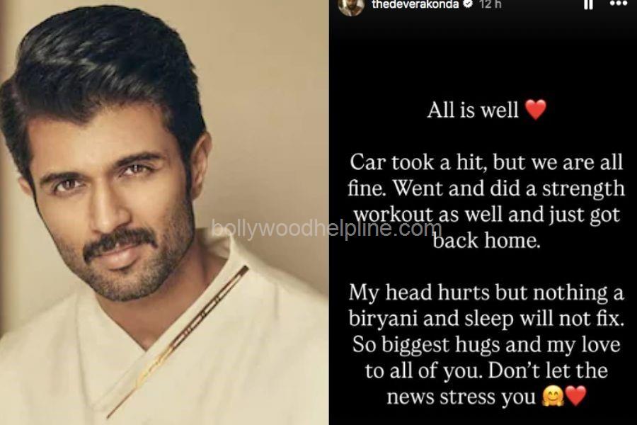 Actor Vijay Deverakonda has assured his fans that he is safe and recovering after being involved in a minor car accident near Undavalli, Jogulamba Gadwal district. The incident, which occurred on the Hyderabad-Bengaluru highway, left fans concerned after images of a damaged car surfaced online, allegedly belonging to the actor.