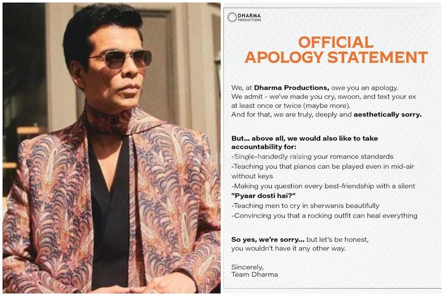 Dharma Productions surprised fans today with an unconventional “apology” on social media, cleverly riding the viral #ApologyTrend. The post, captioned “We promise to be unapologetically yours… hamesha & forever! #ApologyTrend,” isn’t about missteps or controversies—it’s a humorous acknowledgment of the emotional rollercoasters their films have caused audiences over the years.