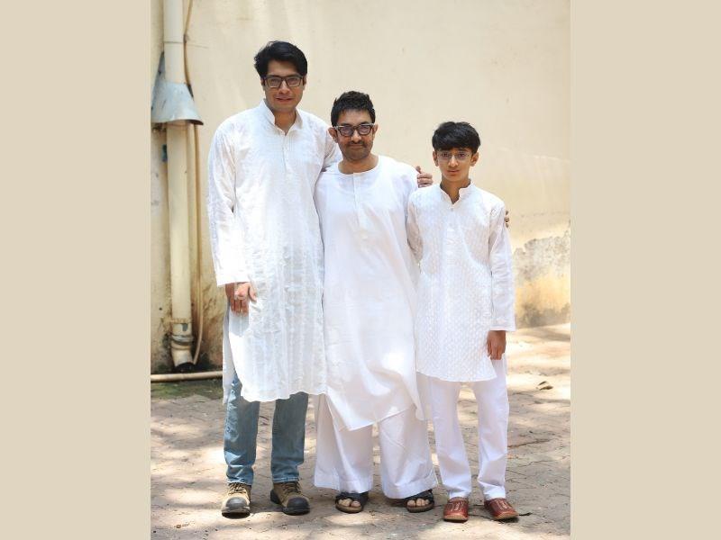 Aamir Khan With Sons Junaid And Azad Snapped Outside Their Residence Marina On The Occasion Of Eid