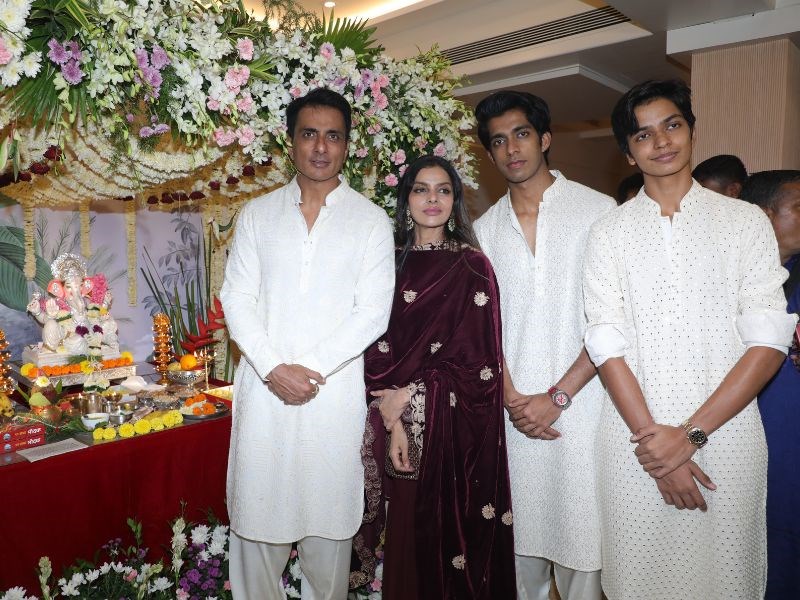 Sonu Sood Snapped Celebrating Ganapati Chaturthi At His Home